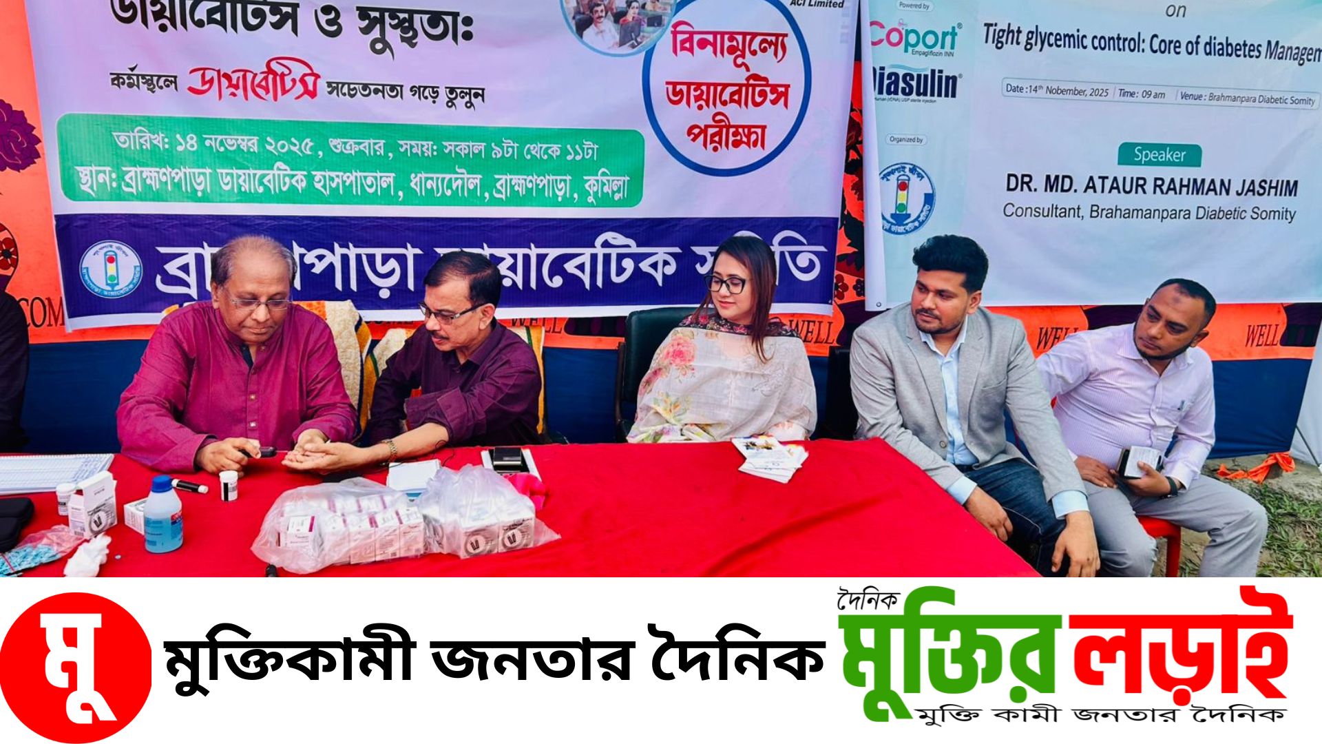 ব্রাহ্মণপাড়ায় বিনামূল্যে ডায়াবেটিস পরীক্ষা ও সেমিনার অনুষ্ঠিত