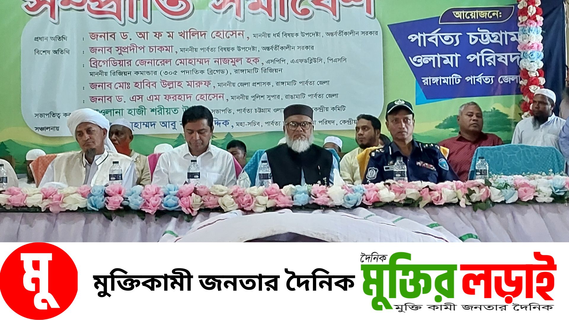 পার্বত্য চট্টগ্রাম ওলামা পরিষদ রাঙ্গামাটি জেলার আয়োজনে অনুষ্ঠিত সম্প্রীতি সমাবেশে বিশেষ অতিথি হিসেবে উপস্থিত ছিলেন জেলা প্রশাসক মোঃ হাবিব উল্লাহ মারুফ,পুলিশ সুপার ডক্টর এস এম ফরহাদ হোসেন। সভাপতিত্ব করেন মাওলানা হাজী শরীয়তুল্লাহ, সভাপতি পার্বত্য চট্টগ্রাম ওলামা পরিষদ কেন্দ্রীয় কমিটি।