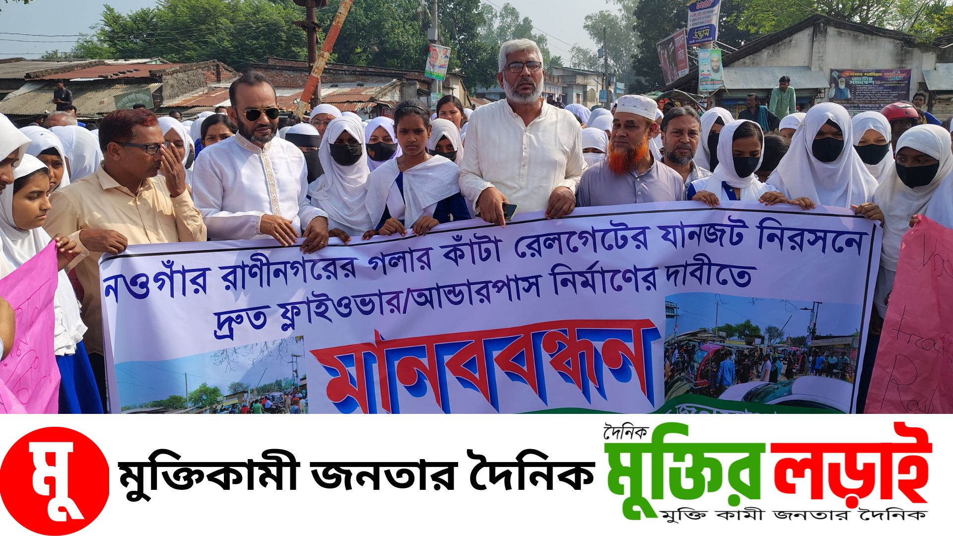 রাণীনগর রেলগেটে ফ্লাইওভারের দাবিতে মানববন্ধন