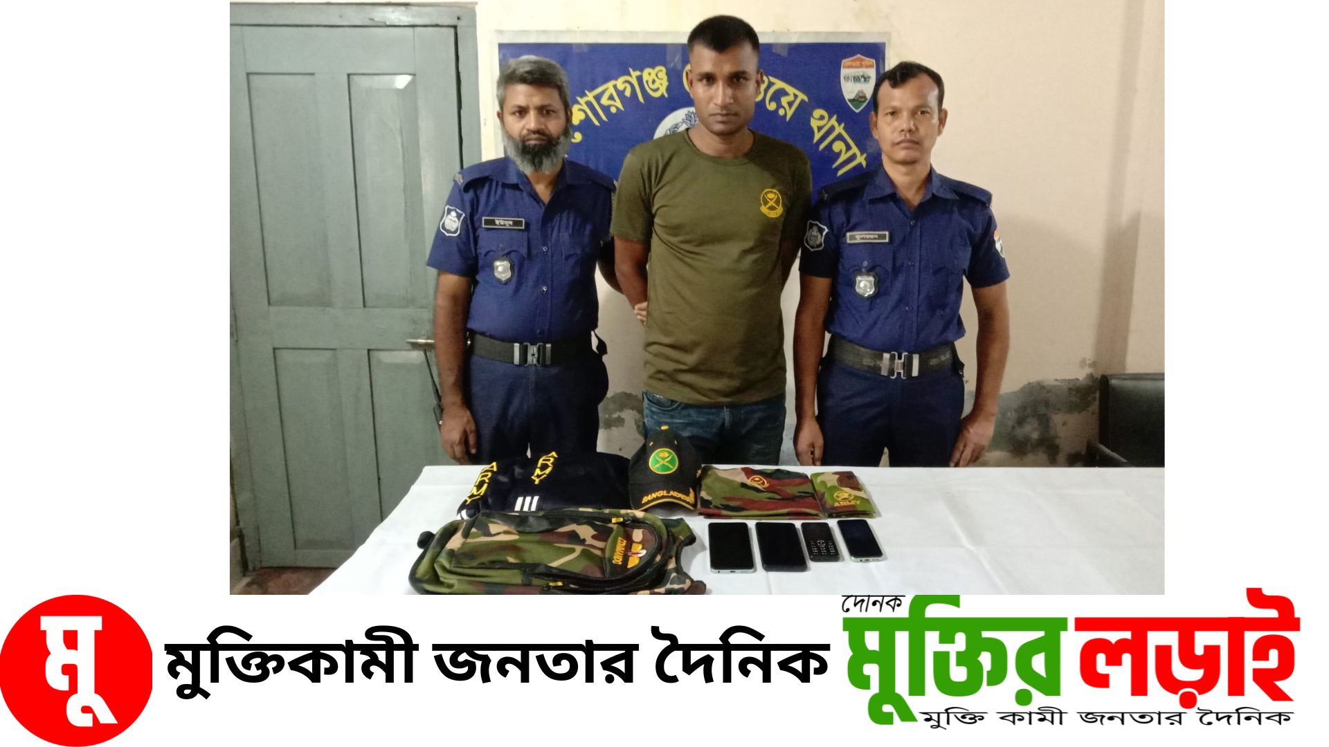 পরবর্তীতে তার গ্রামের ইউপি মেম্বারের মোবাইল নাম্বারে যোগাযোগ করিলে তিনি কোনো বাহিনীতে চাকুরী করেন না মর্মে জানা যায়। তার পড়নে বাংলাদেশ সেনাবাহিনীর লোগো লাগানো হাফ হাতা গেঞ্জি ও লোগো লাগানো ক্যাপ ছিল এবং সঙ্গে থাকা বাংলাদেশ সেনাবাহিনীর লোগো লাগানো ব্যাগ পাওয়া যায়।