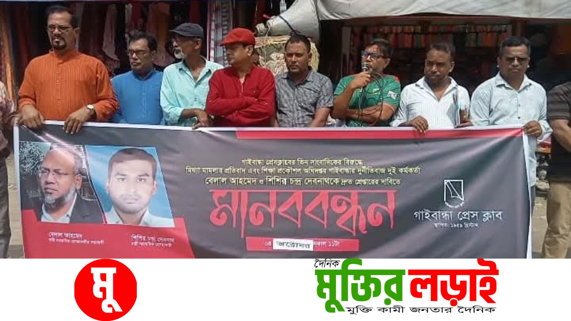 গাইবান্ধায় ৩ সাংবাদিকের বিরুদ্ধে মিথ্যা মামলা দায়েরের প্রতিবাদে মানববন্ধন