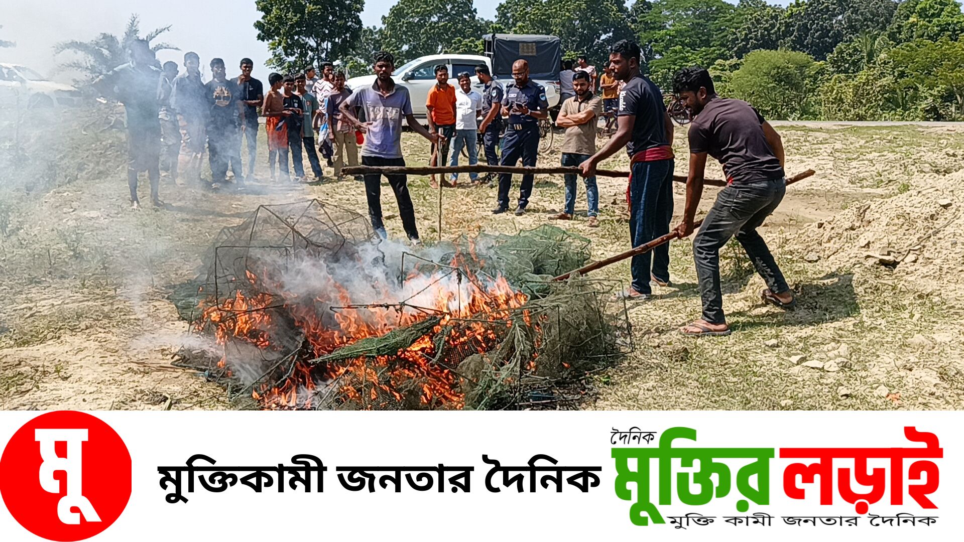 ঝিনাইদহ কালীগঞ্জে ভ্রাম্যমাণ আদালতের অভিযানে ২০টি নিষিদ্ধ চায়না দুয়ারী জাল জব্দ করে আগুনে পুড়িয়ে ধ্বংস করা হয়েছে।