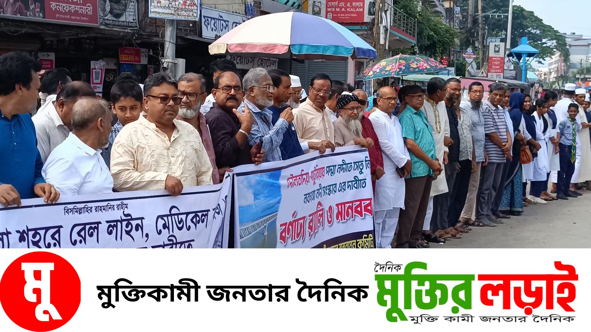 শনিবার সকালে শহরের পোস্ট অফিস মোড়ে এ কর্মসূচীর আয়োজন করে রেল লাইন, মেডিকেল কলেজ ও বিশ্ববিদ্যালয় বাস্তবায়ন কমিটি।