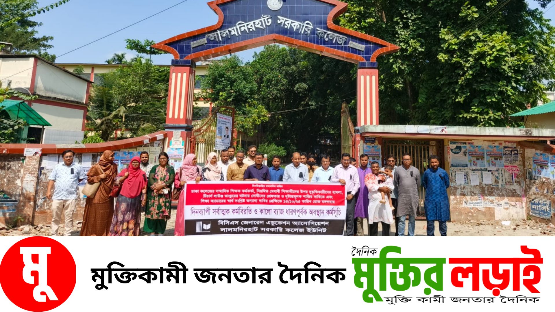 ঢাকা কলেজের শিক্ষকদের ওপর হামলা ও টিচার্স লাউঞ্জে ভাঙচুরের ঘটনার প্রতিবাদে লালমনিরহাট সরকারি কলেজের শিক্ষকরা মঙ্গলবার (১৪ অক্টোবর) দিনব্যাপী কর্মবিরতি পালন করে এবং কালো ব্যাজ ধারণ করেন।