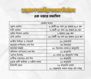 ত্রয়োদশ জাতীয় সংসদ নির্বাচনের তফসিল ঘোষণা করেছে নির্বাচন কমিশন (ইসি)। তফসিল অনুযায়ী আগামী ১২ ফেব্রুয়ারি ভোটগ্রহণ অনুষ্ঠিত হবে।