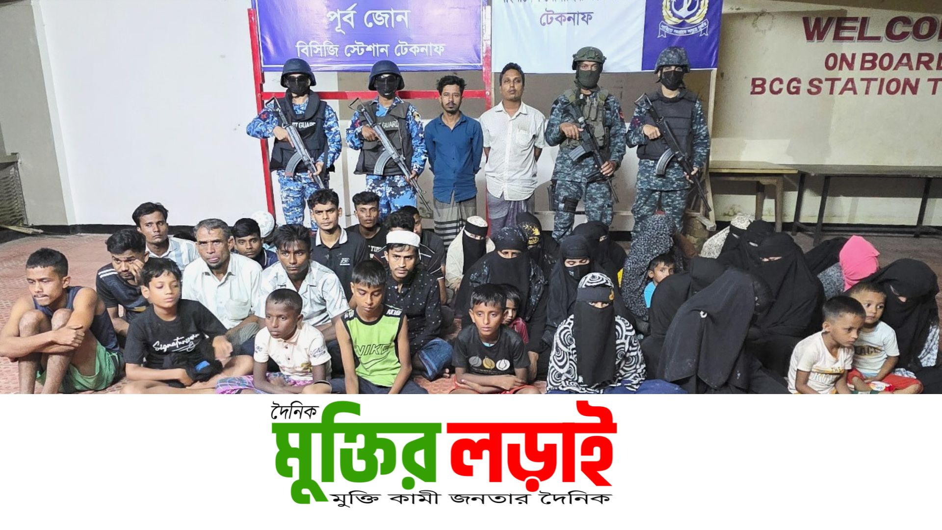 টেকনাফের বাহারছড়ার গহীন পাহাড়ে কোস্ট গার্ড ও নৌবাহিনীর যৌথ অভিযান; পাচারের উদ্দেশ্যে বন্দি থাকা নারী ও শিশুসহ ৩৮ জনকে উদ্ধার এবং ০২ জন মানবপাচারকারী আটক।
