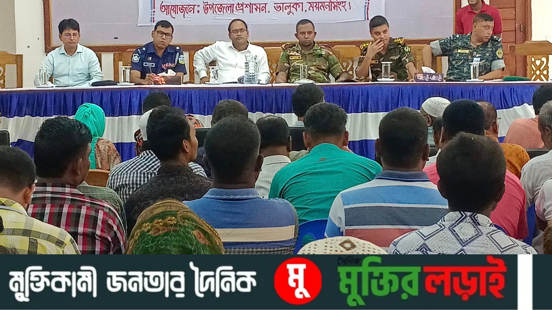 এ সময় উপজেলা নির্বাহী কর্মকর্তা আলী নুর খানের সভাপতিত্বে বিভিন্ন ইউনিয়নের পূজা উদযাপন কমিটির নেতৃবৃন্দ বক্তব্য রাখেন, উপস্থিত ছিলেন মেজর নোমান, ভালুকা মডেল থানার অফিসার ইনচার্জ শাহ কামাল আকন্দ, স্বাস্থ্য কর্মকর্তা হাসানুল হোসাইন, উপজেলা আনসার অফিসার আমিনুজ্জামান, পৌর বিএনপির আহ্বায়ক হাতেম খান, উপজেলা বিএনপির যুগ্ম আহ্বায়ক সালাউদ্দিন আহাম্মেদ উপজেলা যুবদলের সাধারণ সম্পাদক রকিবুল হাসান রাসেল, পূজা উদযাপন কমিটির সভাপতি মলয় নন্দী মানিক, সহ বিভিন্ন পর্যায়ের নেতৃবৃন্দ উপস্থিত ছিলেন।