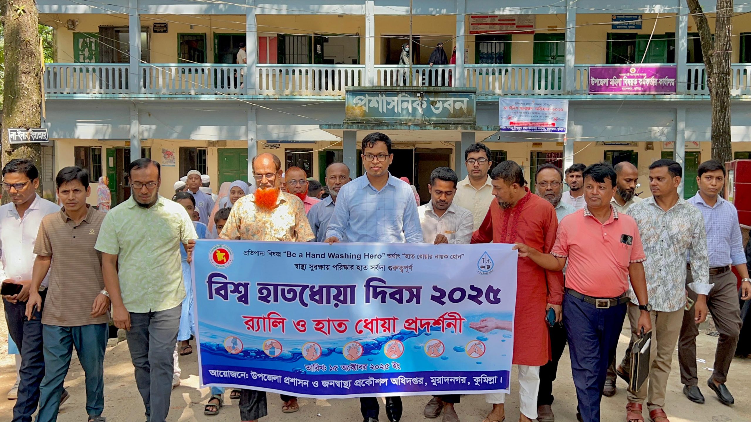“হাত ধোয়ার নায়ক হোন” স্বাস্থ্য সুরক্ষায় পরিস্কার হাত সর্বদা গুরুত্বপূর্ণ এই প্রতিপাদ্যকে সামনে রেখে কুমিল্লার মুরাদনগরে বর্ণাঢ্য র্যালি ও হাত ধোয়া প্রদর্শনীর মাধ্যমে পালিত হয়েছে বিশ্ব হাত ধোয়া দিবস-২০২৫।