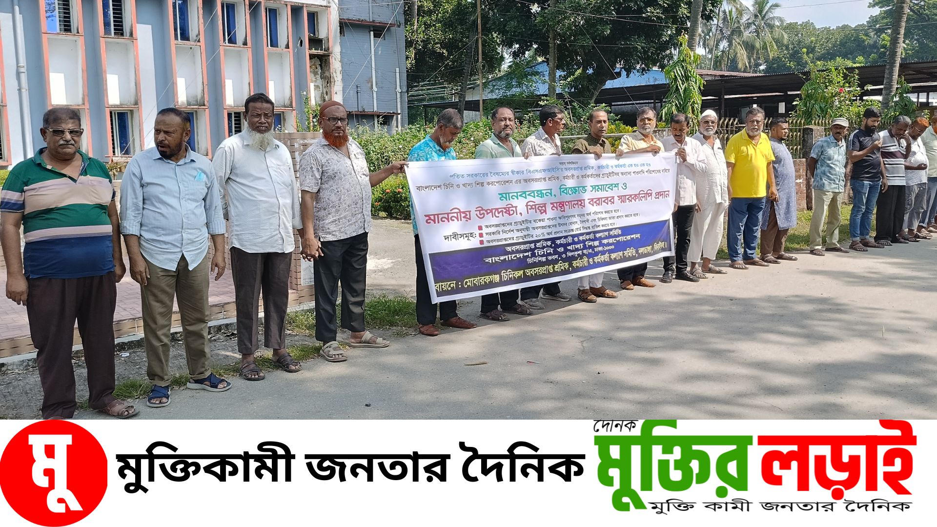 মোবারকগঞ্জ সুগার মিলের অবসরপ্রাপ্ত শ্রমিক কর্মচারী ঐক্য পরিষদের সভাপতি সোহেল আহম্মদ ও সাধারন সম্পাদক সাইফুদ্দিন খালেদ পিকুল জানান, অত্র মিলটি বাংলাদেশ চিনি ও খাদ্য শিল্প করপোরেশন ও শিল্প মন্ত্রনালয়ের অধিন একটি রাষ্টায়াত্ব স্বায়তশাষিত প্রতিষ্টান। এ মিল থেকে অবসরের পর শ্রমিকদের গ্রাচুইটির নার্ষ্য টাকা পেতে সরকারের বিভিন্ন মন্ত্রনালয়ে আবেদন করেও কোন ফল পায়নি। এখন শেষ বয়সে এসে অনেকেই স্ব স্ব পরিবারের কাছে বোঝা হয়ে আছেন। নেতৃবৃন্দরা বলেন, পাওনা টাকার দাবীতে তারা আগামী ২৬ অক্টোবর বিসিআইসির সদর দপ্তরে বিক্ষোভ ও মানববন্ধন কর্মসূচী পালন সহ প্রধান উপদেষ্টা বরাবর স্বারকলিপি দিবেন।