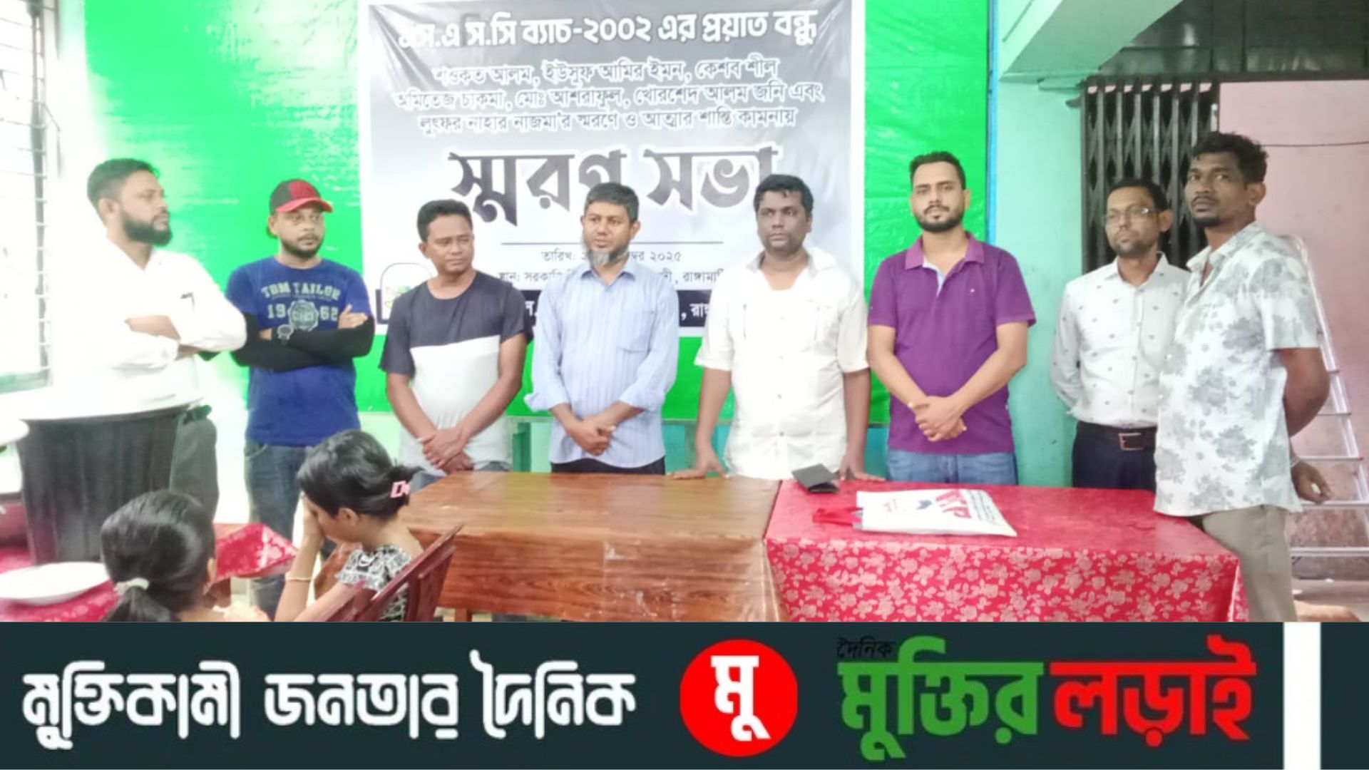 আলোচনা পর্বের শেষে এসএসসি-২০০২ ব্যাচের প্রয়াত বন্ধুদের স্মরণে ও আত্মার শান্তি কামনায় দোয়া-মোনাজাত করা হয়।