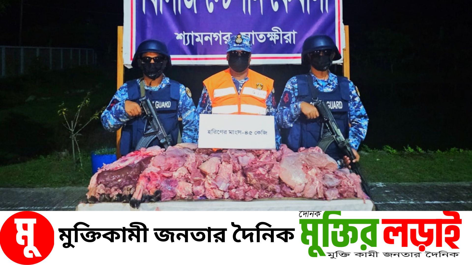 সাতক্ষীরার শ্যামনগরে ৪৫ কেজি হরিণের মাংস ও ১২ টি পা জব্দ করেছে কোস্ট গার্ড।