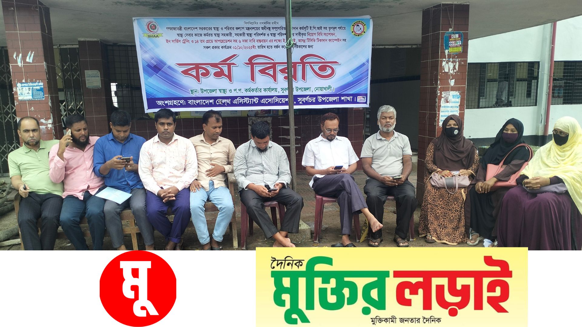 শনিবার (৪ অক্টোবর) সকাল ৯টায় সুবর্ণচর উপজেলা হেলথ অ্যাসিস্ট্যান্ট অ্যাসোসিয়েশনের উদ্যোগে উপজেলা স্বাস্থ্য ও পরিবার পরিকল্পনা কর্মকর্তার কার্যালয় এই কর্মবিরতি শুরু হয়।