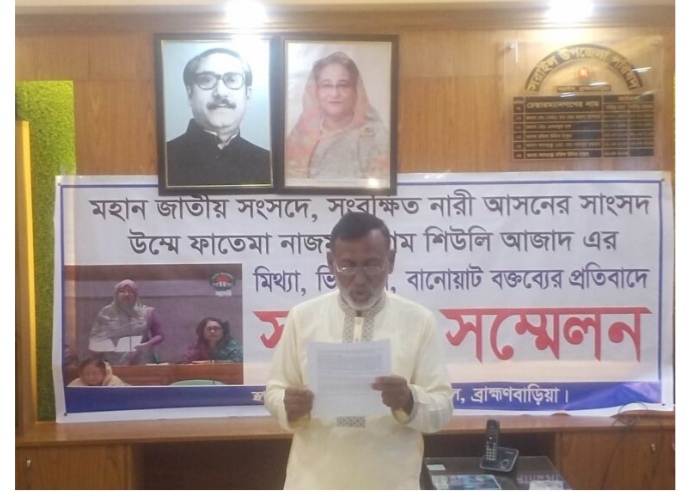 সংসদে মহিলা সাংসদের বক্তব্যের প্রতিবাদে সরাইলে সংবাদ সম্মেলন