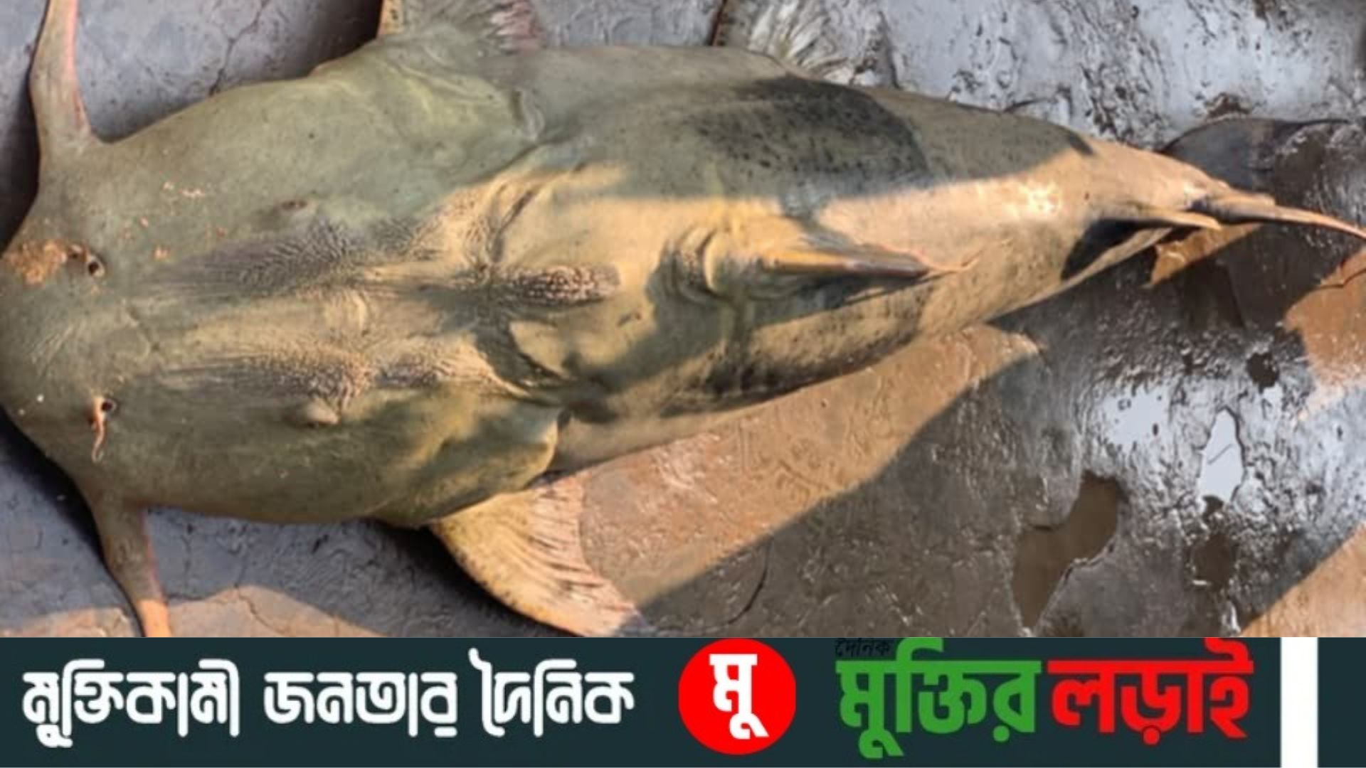 গোমতী নদীতে এক জেলের জালে ধরা পড়েছে ৪৩ কেজি ওজনের দুটি বাগাইর মাছ