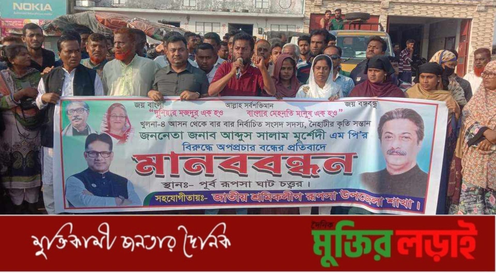 রূপসায় এমপি সালাম মূর্শেদীর বিরুদ্ধে অপপ্রচার বন্ধের দাবীতে মানববন্ধন