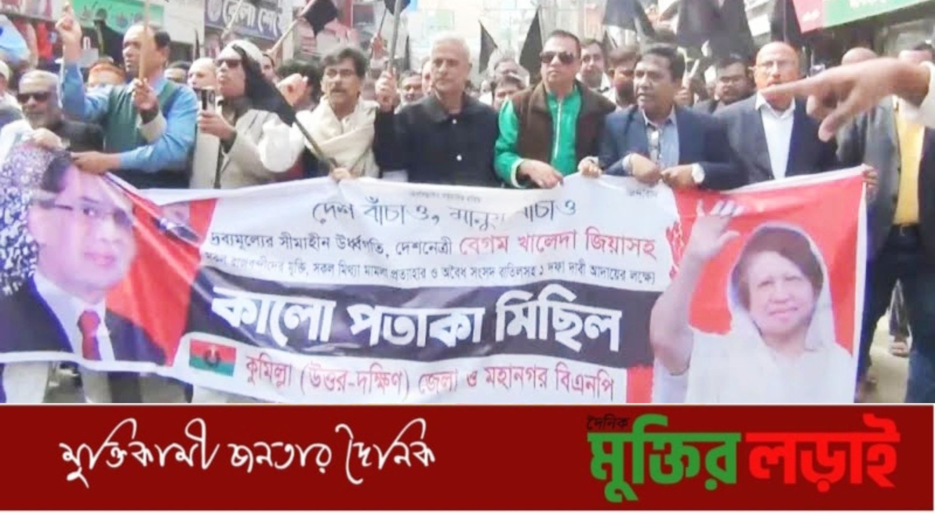 কুমিল্লায় বিএনপির কালো পতাকা মিছিল