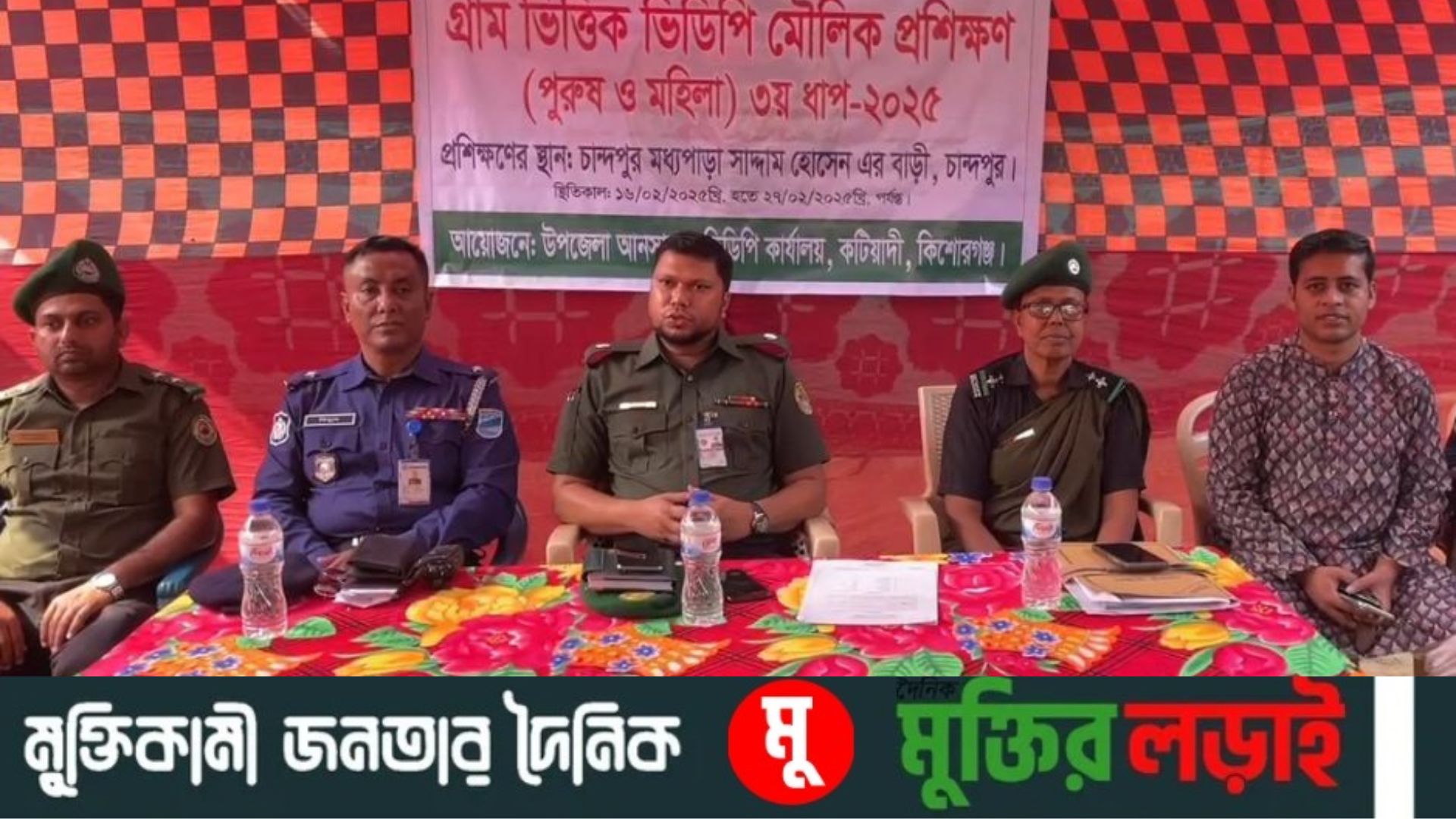 মোঃ ওয়াহিদ, কিশোরগঞ্জ কিশোরগঞ্জের কটিয়াদী উপজেলা আনসার ও ভিডিপি কার্যালয়ের আয়োজনে ১০ দিনব্যাপি গ্রাম ভিত্তিক ভিডিপি মৌলিক প্রশিক্ষণ (পুুরুষ ও