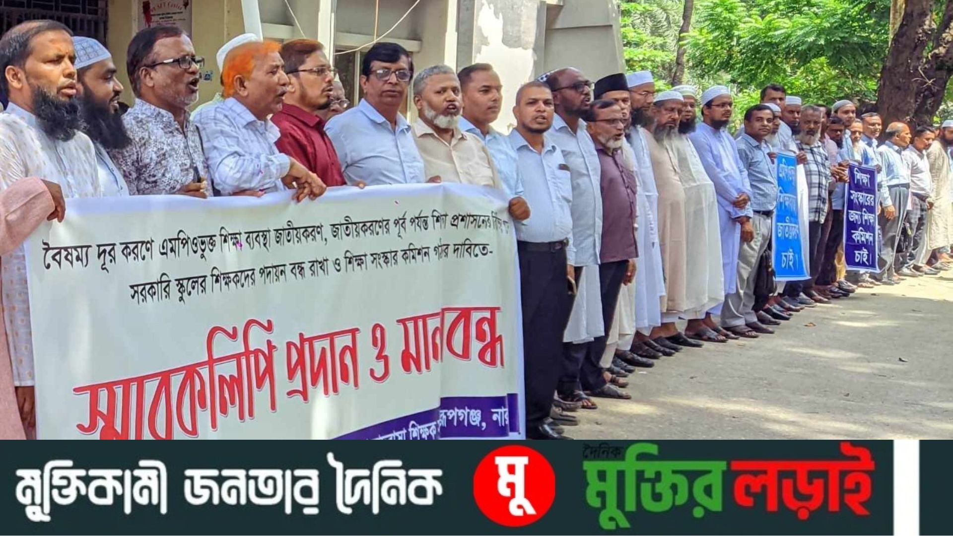 রূপগঞ্জে জাতীয়করনের দাবীতে বেসরকারী শিক্ষা প্রতিষ্ঠানের শিক্ষকদের মানববন্ধ