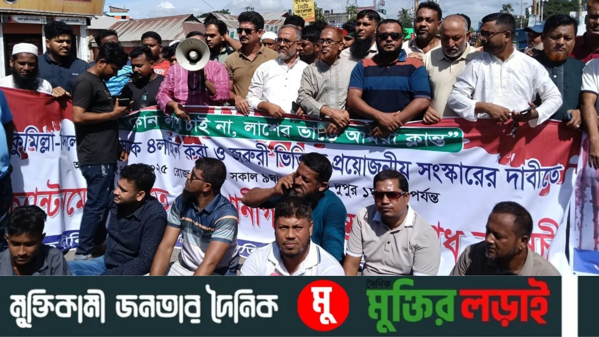 সড়ক সংস্কারের দাবিতে কুমিল্লা সিলেট মহাসড়ক অবরোধ করে বিক্ষোভ