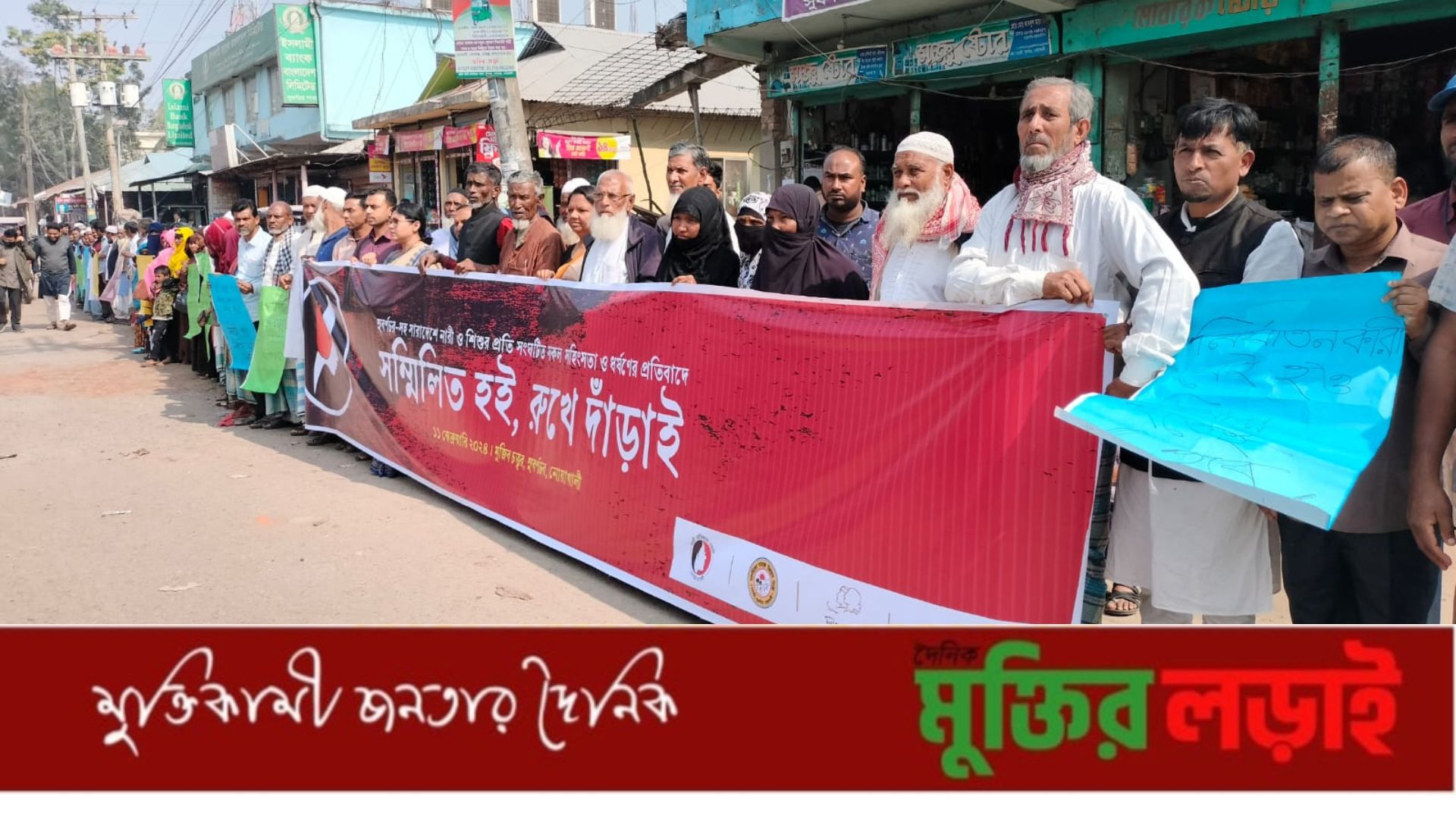 সুবর্ণচরে নারী ও শিশুর প্রতি সহিংসতার বিরুদ্ধে মানববন্ধন ও প্রতিবাদ সমাবেশ