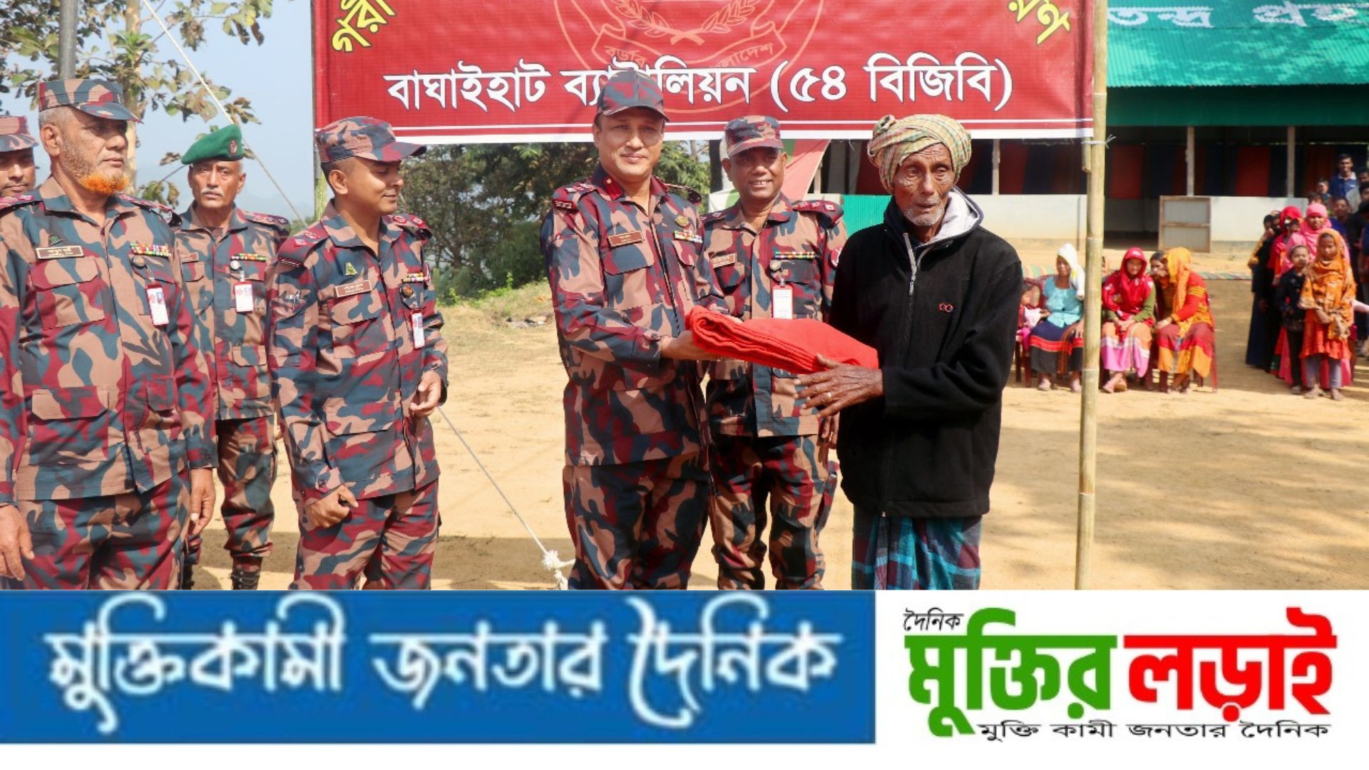 বাঘাইহাট ৫৪ ব্যাটালিয়ন দুর্গম অঞ্চলে শীতার্তদের মাঝে শীতবস্ত্র বিতরণ