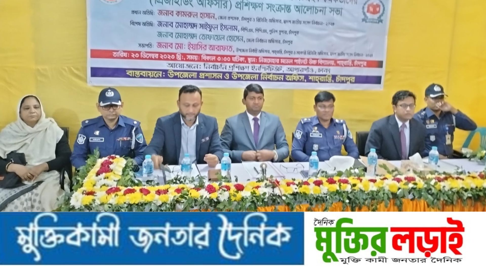 মোঃ কামরুজ্জামান সেন্টু চাঁদপুরের শাহরাস্তিতে দ্বাদশ জাতীয় সংসদ নির্বাচন উপলক্ষে ভোটগ্রহণ কর্মকর্তাদের (প্রিজাইডিং অফিসার) প্রশিক্ষণ সংক্রান্ত আলোচনা সভা অনুষ্ঠিত হয়েছে।