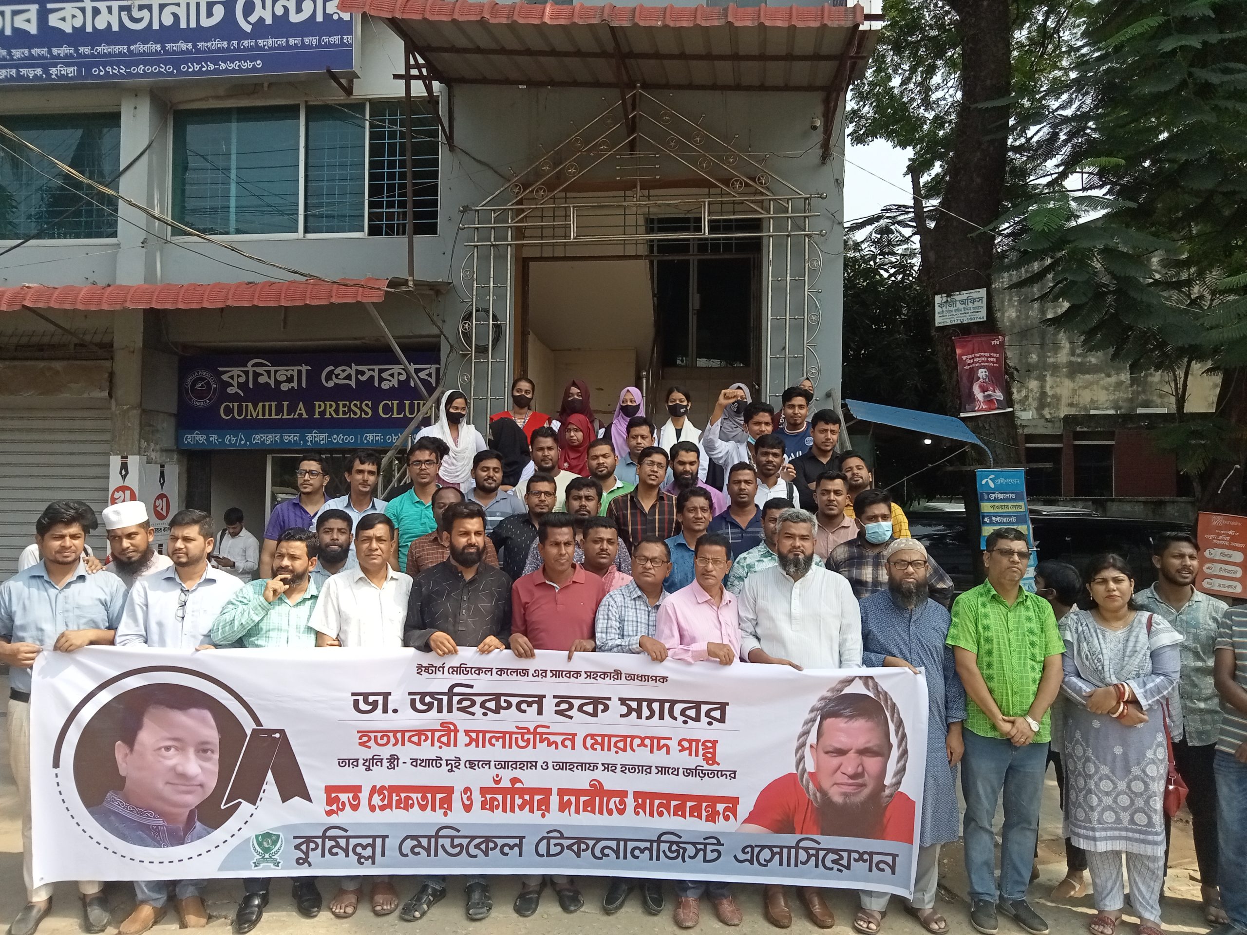কুমিল্লায় ডাঃ জহিরুল হত্যার বিচার চেয়ে মেডিকেল টেকনোলজিস্ট এসোসিয়েশনের মানববন্ধন