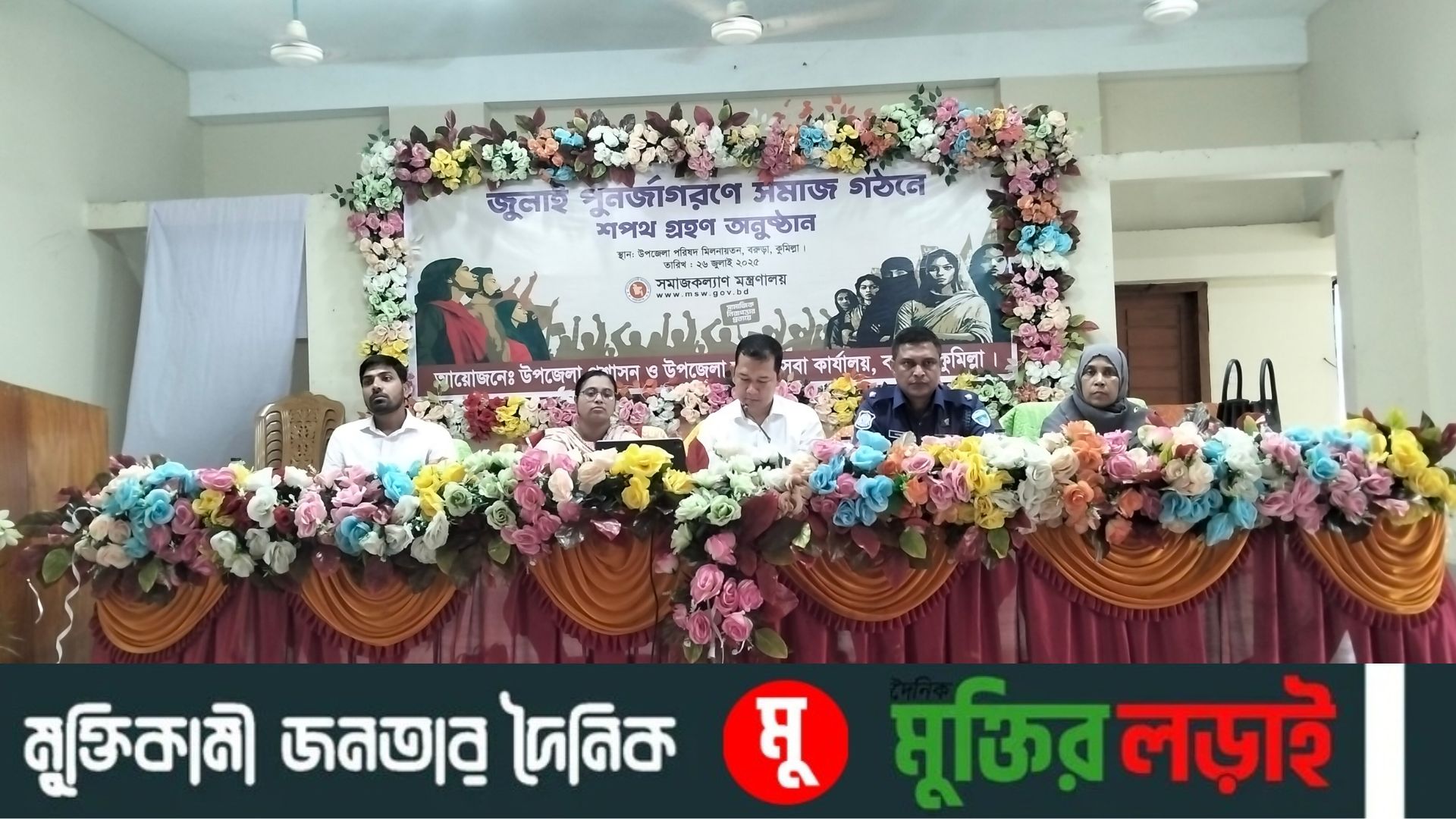 মোঃ ইলিয়াছ আহমদ, বরুড়া কুমিল্লার বরুড়া উপজেলা প্রশাসন ও উপজেলা সমাজসেবা কার্য্যালয়ের উদ্যোগে জুলাই পূর্ণজাগরণে সমাজ গঠনে শপথ গ্রহণ অনুষ্ঠান