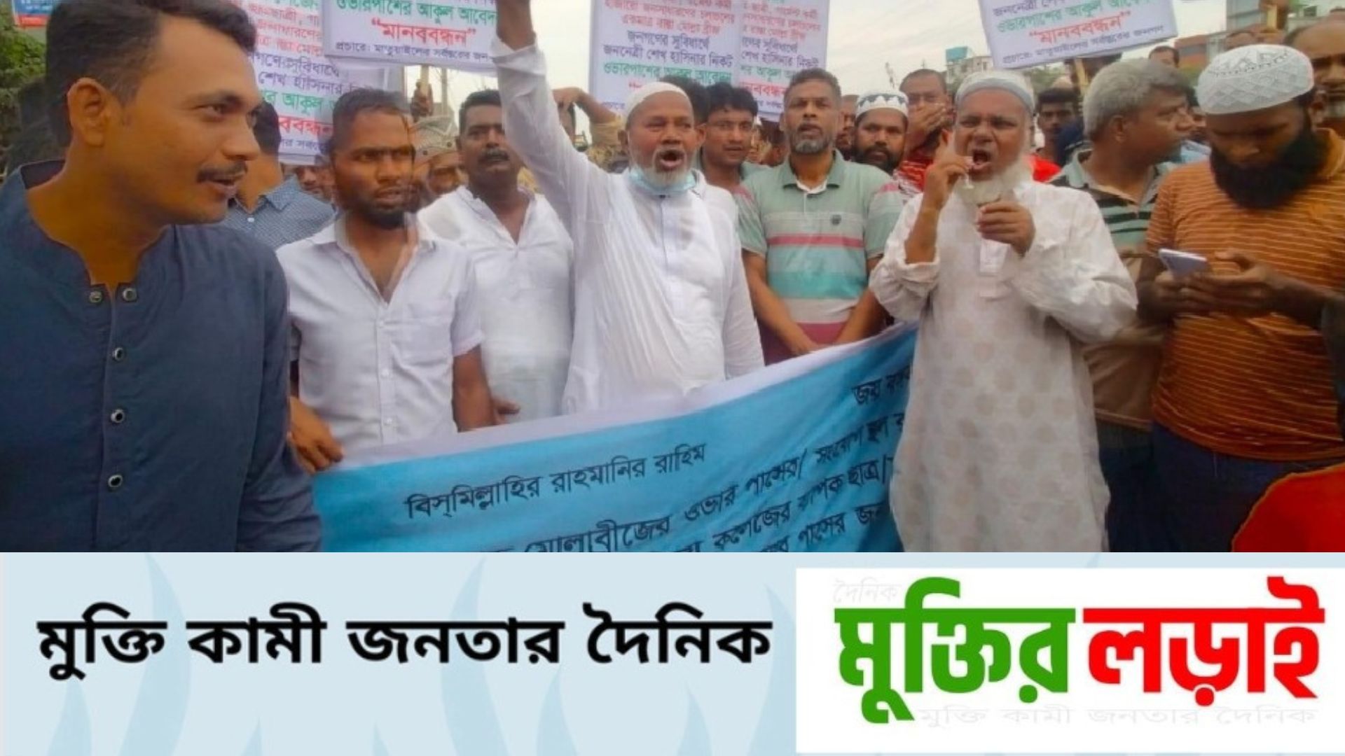 যাত্রাবাড়ী-ডেমরা সড়কের মোল্লা ব্রীজ এলাকায় ওভার পাশের দাবীতে মানববন্ধন