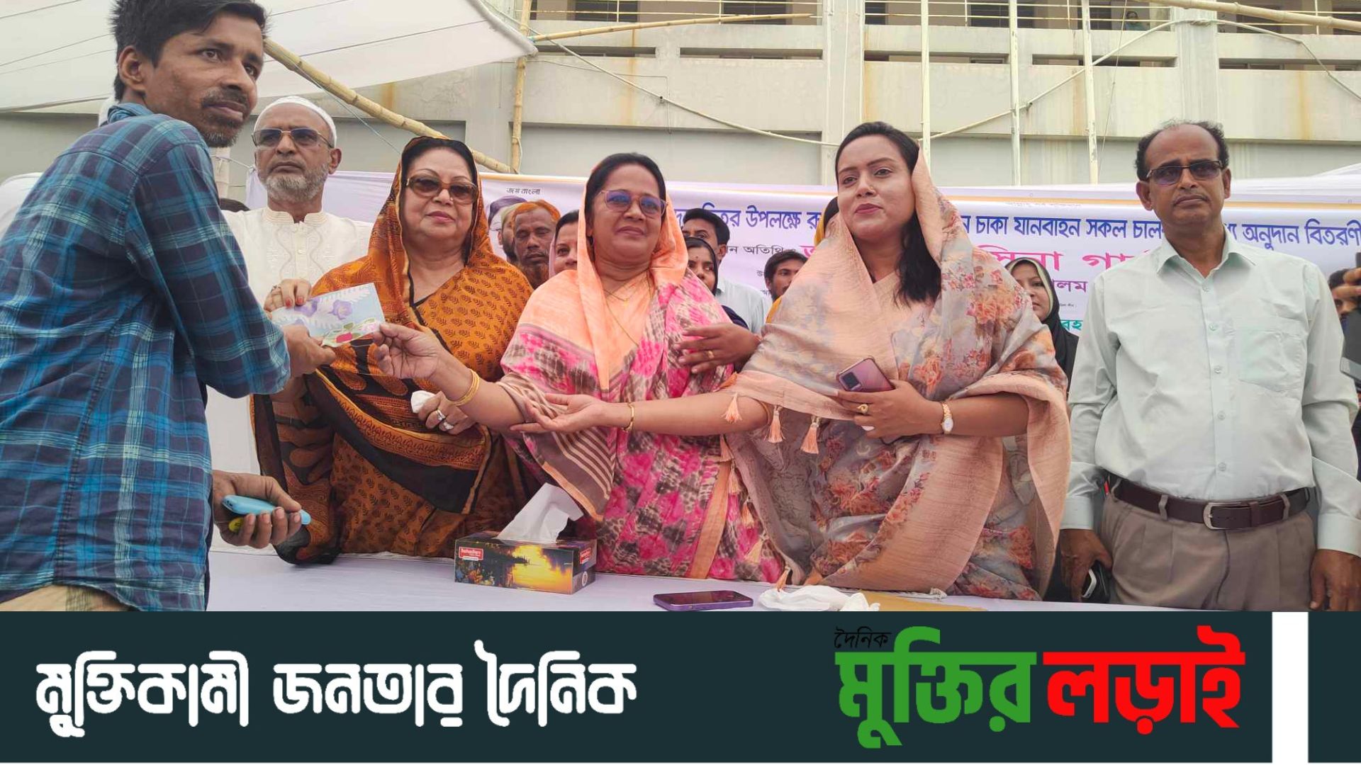 রূপগঞ্জের তিন চাকার পরিবহনের চালকদের মধ্যে নগদ অর্থ বিতরণ