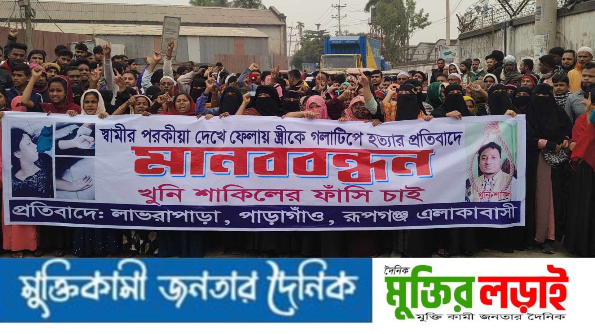 রাকিবুল ইসলাম, রূপগঞ্জ (নারায়ণগঞ্জ) নারায়ণগঞ্জের রূপগঞ্জ উপজেলার গোলাকান্দাইল ইউনিয়নের শিংলাবো গ্রামের গৃহবধূ হাফসা আক্তার কাকলী(২৭) হত্যা মামলার আসামীদের গ্রেফতারের দাবীতে