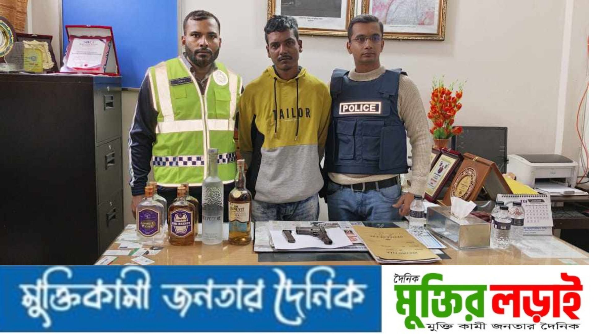 রূপগঞ্জে ১টি বিদেশি পিস্তল ও ৬ বোতল মদসহ অস্ত্রধারী গ্রেফতার