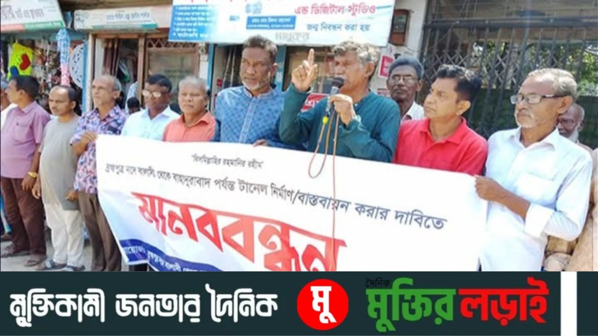 ব্রহ্মপুত্র নদে বালাসী-বাহাদুরাবাদ টানেল নির্মাণের দাবিতে গাইবান্ধায় মানববন্ধন