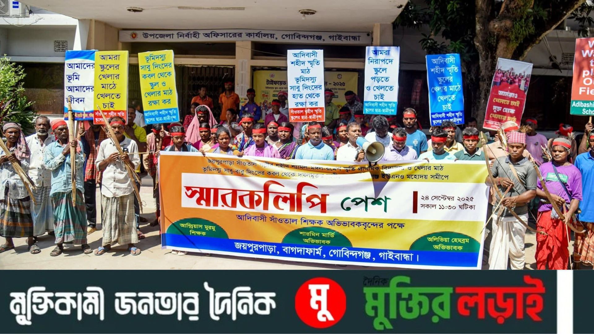 গাইবান্ধায় সাঁওতালদের স্কুল ও খেলার মাঠ দখলচেষ্টা: বিক্ষোভ-স্মারকলিপি