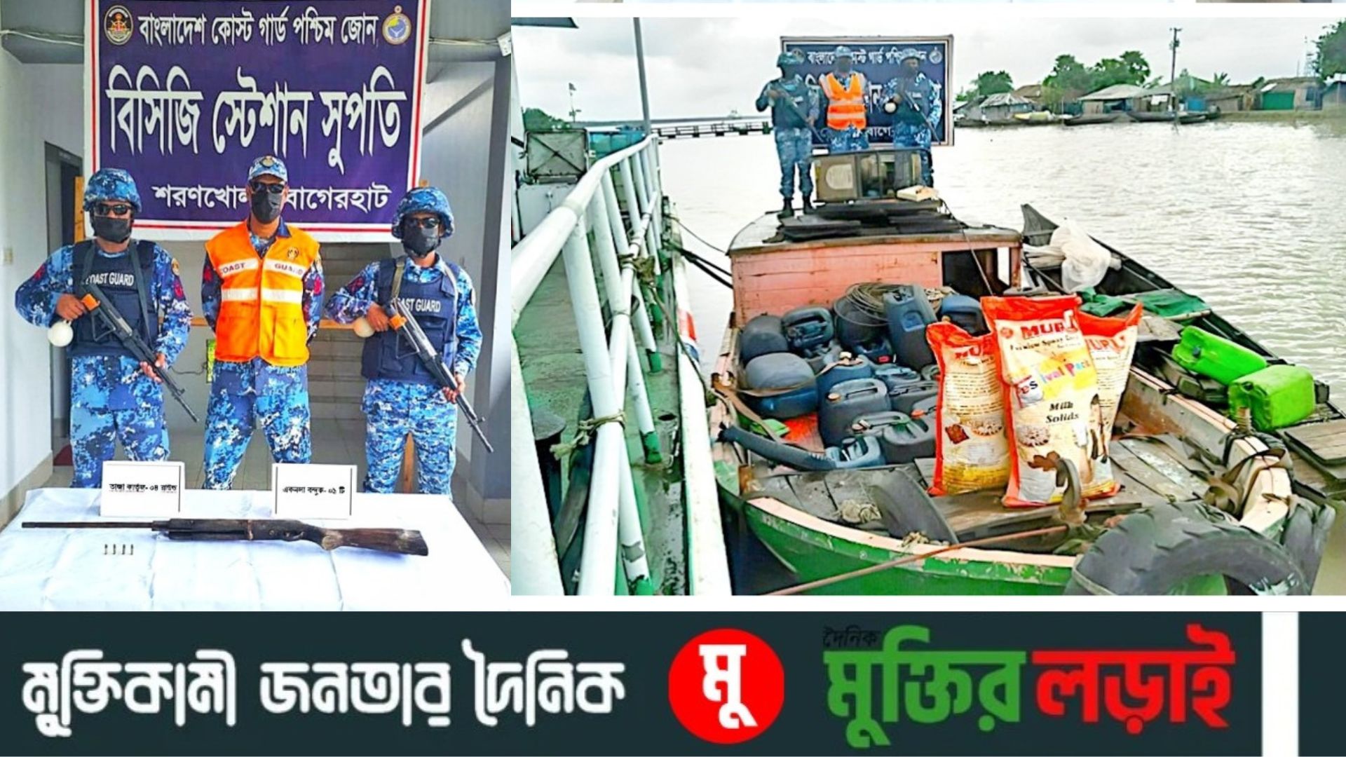 পিরোজপুর ও মোংলায় পৃথক অভিযানে অস্ত্র, গোলাবারুদ ও চোরাইকৃত মালামালসহ বোট জব্দ