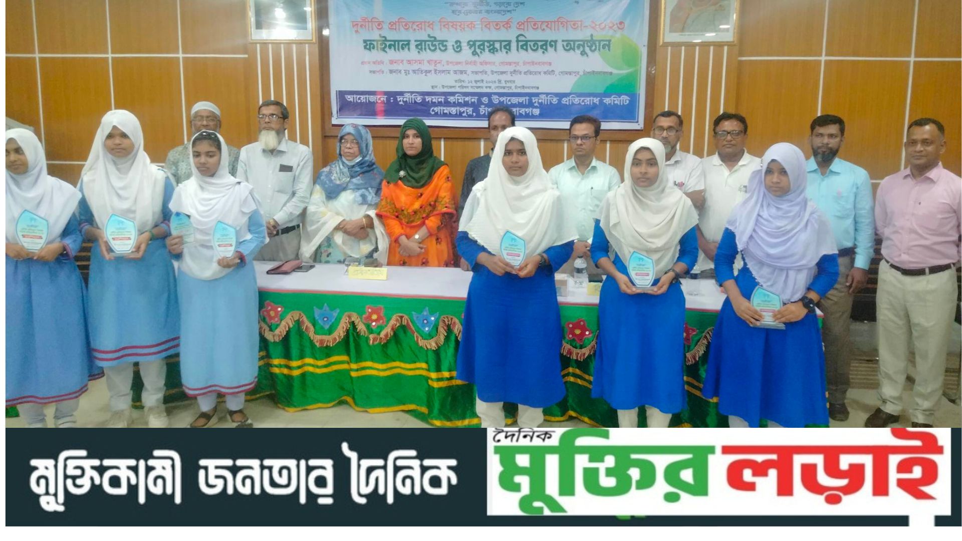 গোমস্তাপুরে দুর্নীতি প্রতিরোধ বিষয়ক বিতর্ক প্রতিযোগিতার পুরস্কার বিতরণ