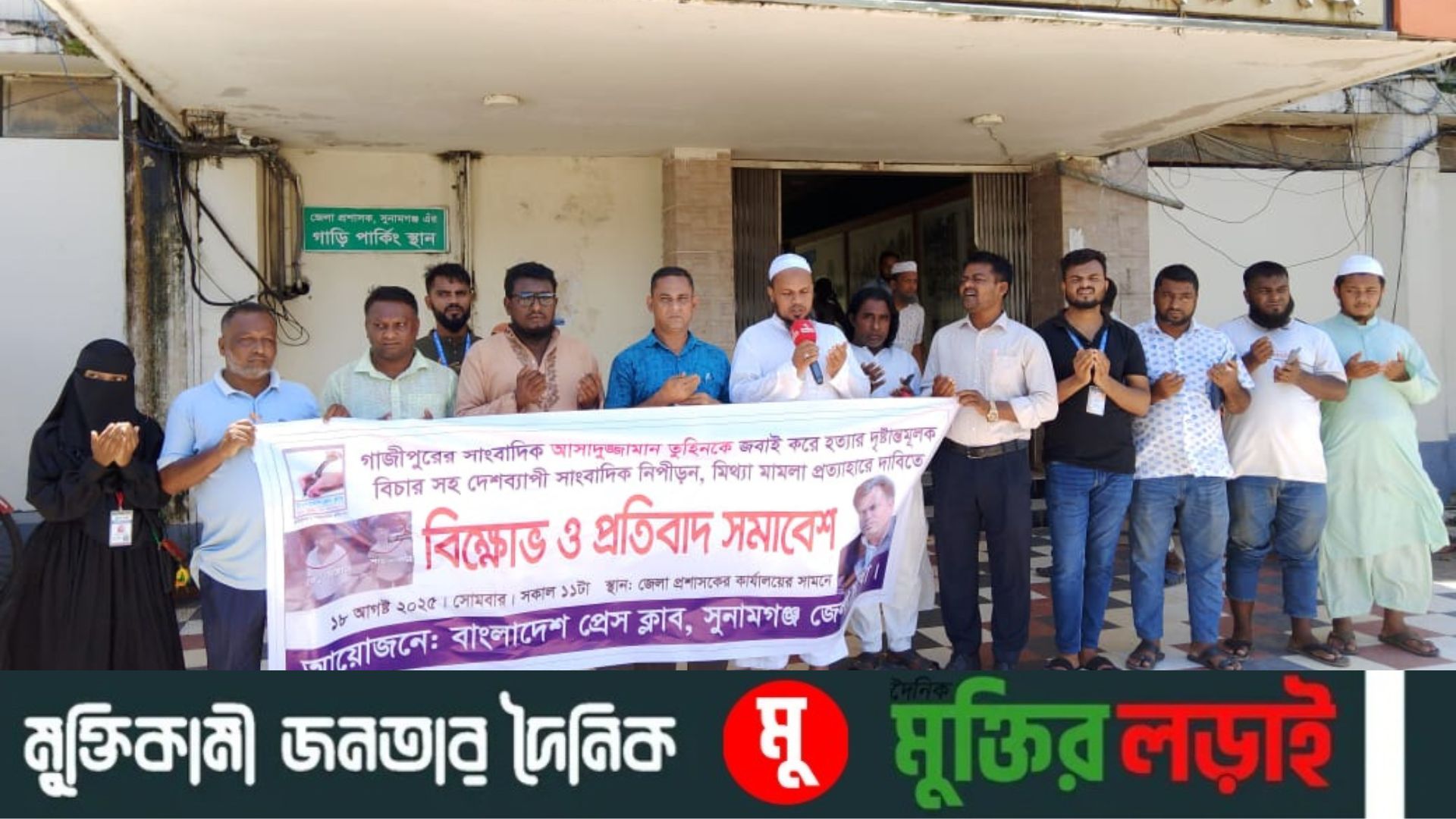 গাজীপুরে সাংবাদিক আসাদুজ্জামান তুহিন হত্যার বিচারের দাবিতে সুনামগঞ্জে মানববন্ধন