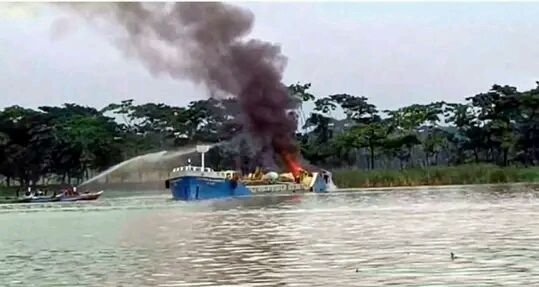 ঝালকাঠির সুগন্ধা নদীতে তেলবাহী জাহাজে ভয়াবহ বিস্ফোরণ