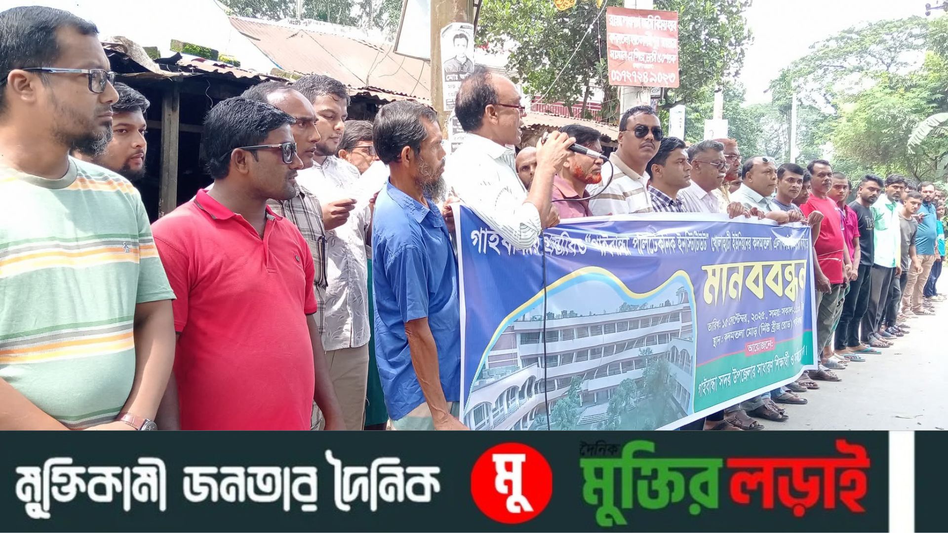 গাইবান্ধায় প্রস্তাবিত পলিটেকনিক ইনস্টিটিউট নির্মাণের দাবিতে মানববন্ধন
