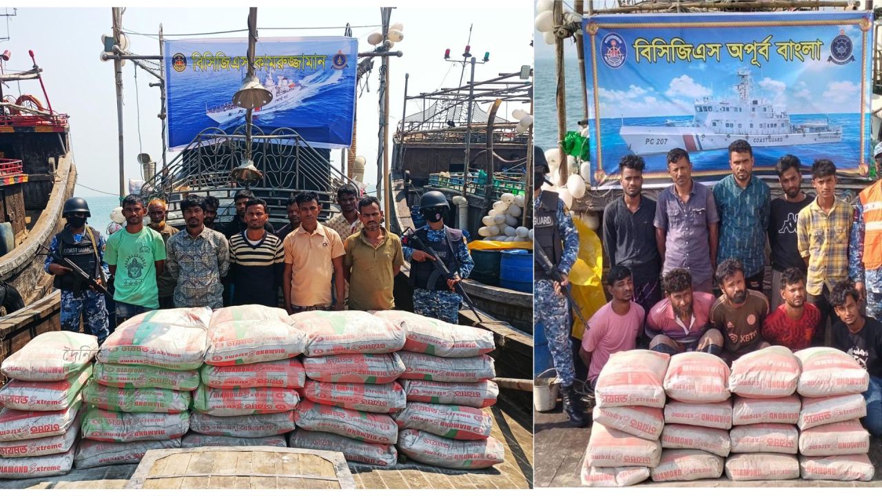 কোস্ট গার্ডের পৃথক ২টি অভিযানে মায়ানমারে পাচারকালে বিপুল পরিমাণ সিমেন্টসহ ১৮ পাচারকারী আটক।