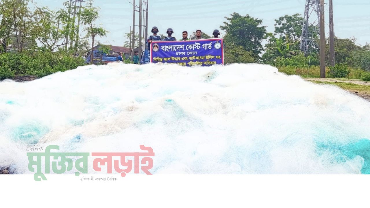 তিনি বলেন, গোপন সংবাদের ভিত্তিতে আজ ১০ এপ্রিল ২০২৬ তারিখ শুক্রবার সকাল ৭টায় কোস্ট গার্ড স্টেশন পাগলা কর্তৃক মুন্সিগঞ্জের সদর থানাধীন পঞ্চসারের দুর্গাবাড়ি ও সিপাহি পাড়া সংলগ্ন এলাকায় একটি বিশেষ অভিযান পরিচালনা করা হয়। অভিযান চলাকালীন উক্ত এলাকার ৩টি জাল তৈরির কারখানা ও ২টি গোডাউন তল্লাশি করে প্রায় ১ শত ৩৯ কোটি ২৯ লক্ষ টাকা মূল্যের ৩ কোটি ৯৭ লক্ষ ৪৫ হাজার মিটার নিষিদ্ধ কারেন্ট জাল ও ৩০ হাজার পিস জাল তৈরির কাজে ব্যবহৃত সুতার রিল জব্দ করা হয়।
