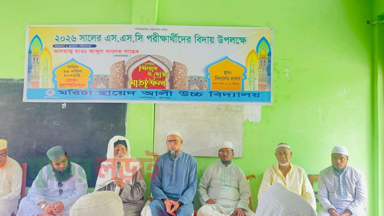কুমিল্লার দেবিদ্বার উপজেলার ঐতিহ্যবাহী শিক্ষাপ্রতিষ্ঠান মরিচা ছায়েদ আলী উচ্চ বিদ্যালয়ে ২০২৬ সালের এসএসসি পরীক্ষার্থীদের বিদায় উপলক্ষে বার্ষিক মিলাদ ও দোয়া মাহফিল অনুষ্ঠিত হয়েছে। বৃহস্পতিবার (১৬ এপ্রিল) সকালে বিদ্যালয়ের হলরুমে ধর্মীয় ভাবগাম্ভীর্যের মধ্য দিয়ে এ আয়োজন সম্পন্ন হয়।