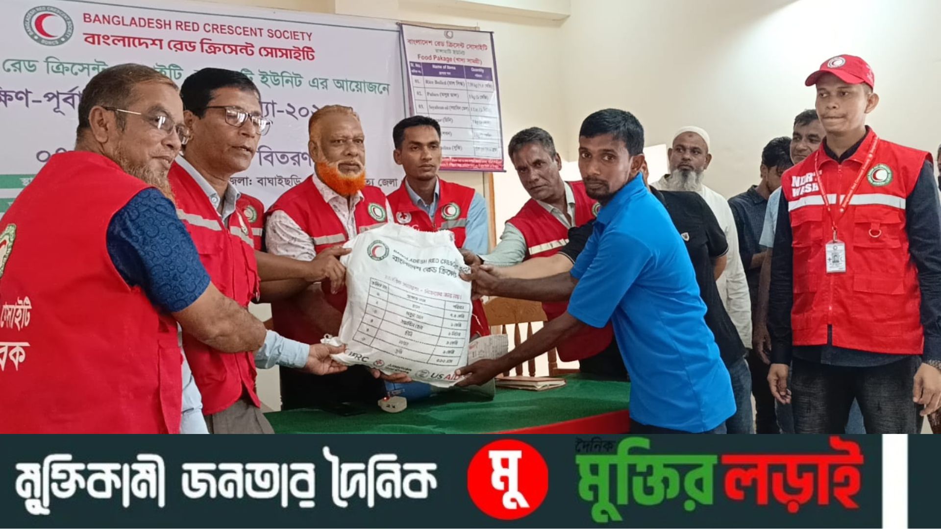 বাঘাইছড়িতে বন্যার্তদের মাঝে রেড ক্রিসেন্ট সোসাইটির খাদ্য সামগ্রী বিতরণ